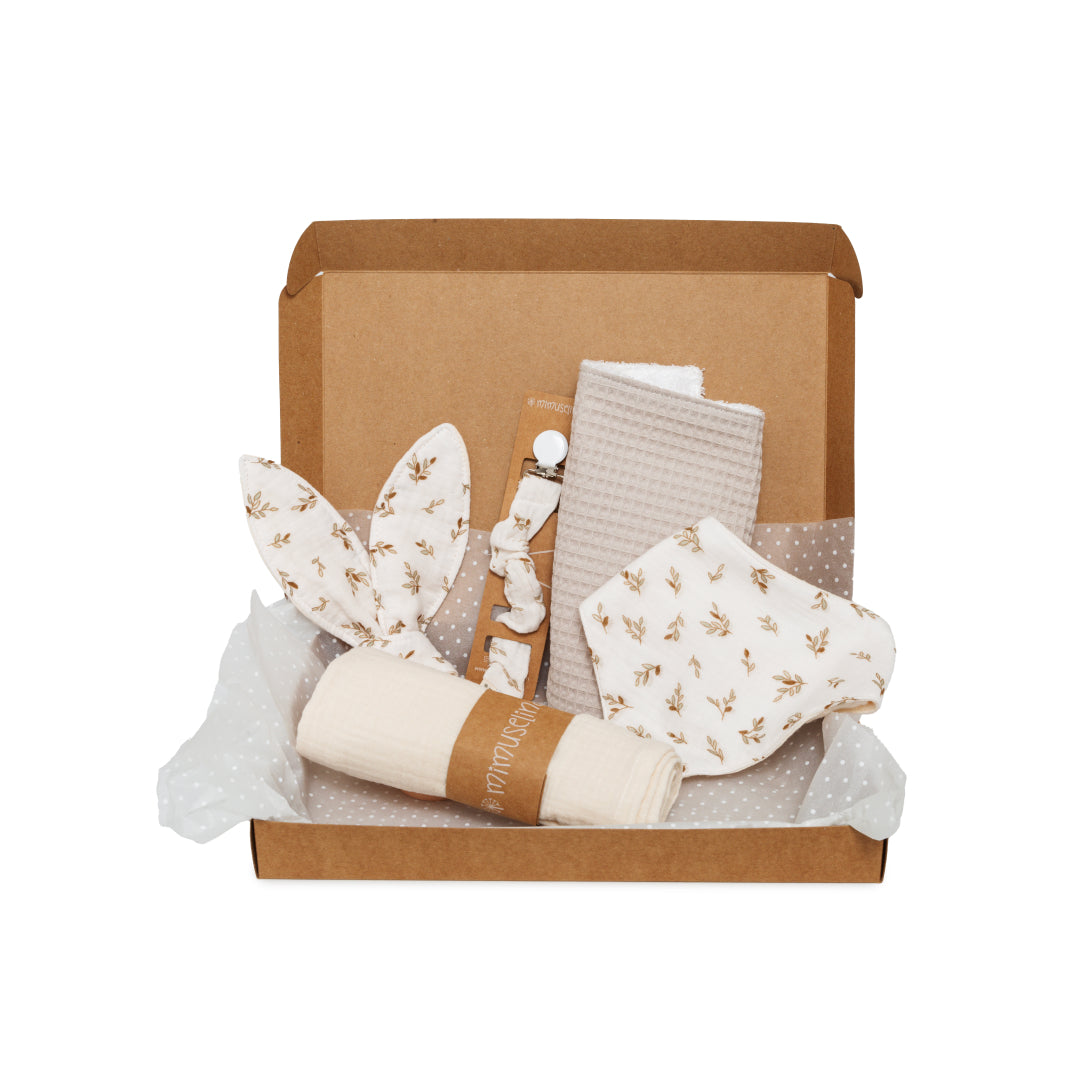 Las canastillas personalizadas de Mimuselina están hechas a mano con mucho amor y mimo en nuestros talleres de proximidad. En ellas, puedes encontrar diferentes objetos para el bebé como un body de bebé, una muselina muy muy suave para arropar a tu niño los días de frío y, además, otros productos para recién nacido como mordedores, muñeco doudou, cambiador de paseo y arrullos.