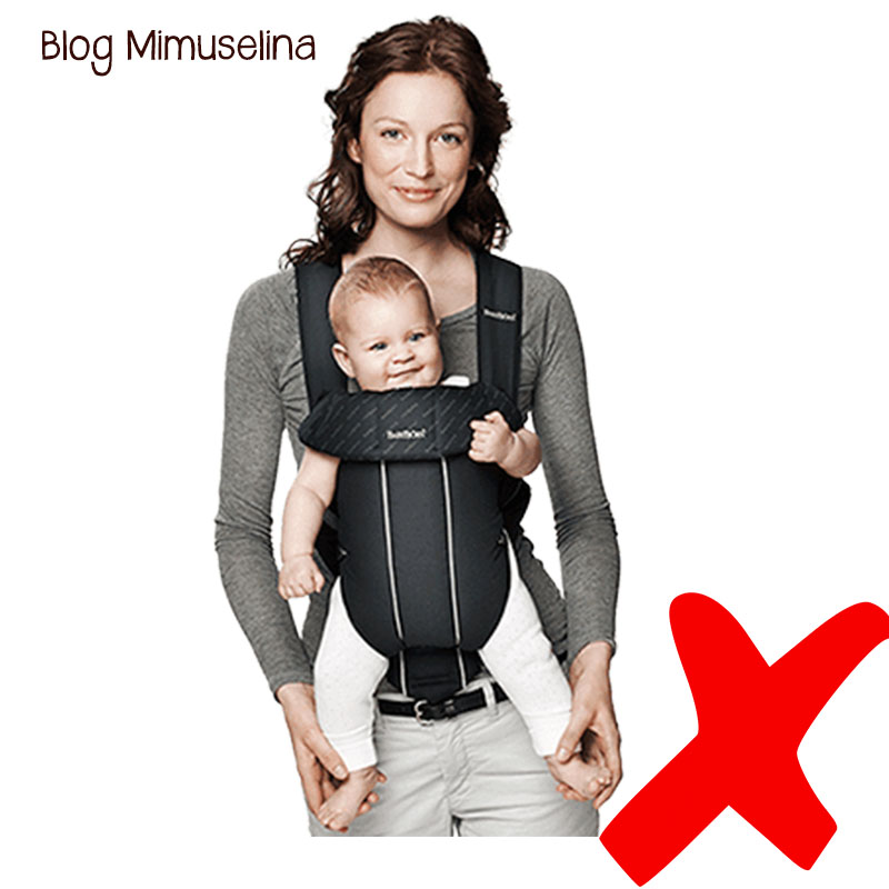 Huid de aquellos elementos de porteo que hagan que vuestro bebé vaya mirando hacia fuera. Jamás. Es la norma más básica y fundamental del porteo: nunca debes poner a tu bebé hacia fuera. La postura de acople debe ser la más natural por eso, si veis algún niño en un portabebés mirando para el exterior, veréis que parece incómodo porque la postrua es antinatural.
