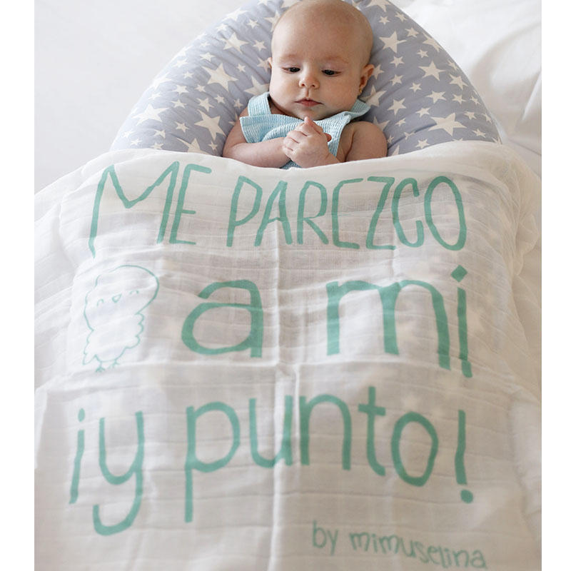 Muselina de gasa 100% algodón con frase estampada de Mimuselina