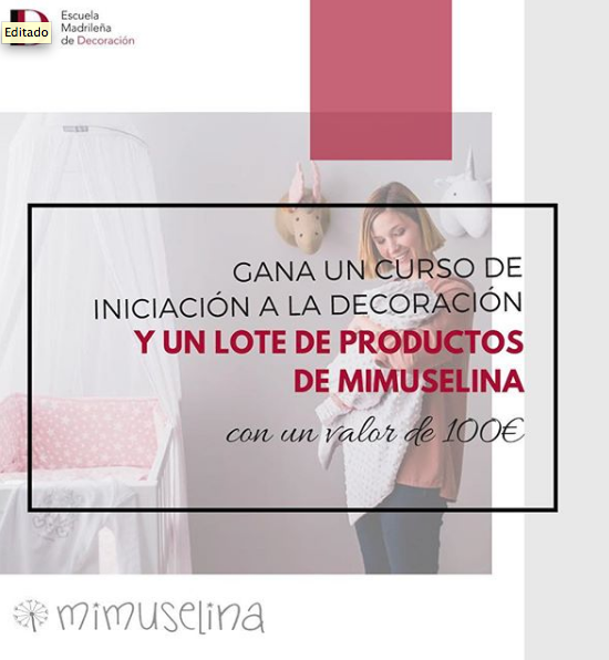 ¿Os interesa la decoración? Son muchas las mamis que descubren en este momento, a la hora de afrontar la decoración de la habitación de sus hijos, que realmente les encanta y deciden dar un cambio a sus vidas metiéndose de lleno en una formación diferente y motivante. Si es así, echad un vistazo a un súper concurso que tenemos en marcha con la Escuela Madrileña de Decoración. La ganadora o el ganador, por qué no, que los papis también pueden verse identificados, podrán ganar un curso de iniciación a la decoración valorado en 1000 euros y un lote de productos de Mimuselina valorados en 100 euros. No dejéis pasar la oportunidad... Pasad por nuestros perfiles en Instagram para ver las bases.