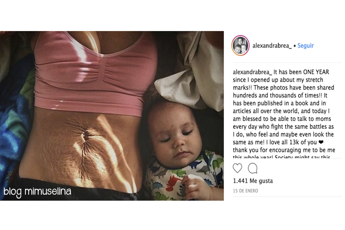 Son muchos los cambios que experimenta tu cuerpo, tanto hormonales como físicos. Y no hay que renegar ni ocultar los estragos que puede causar un embarazo en tu cuerpo, son la prueba física de crear vida en tu interior. Está bien cuidarse, evitar que salgan estrías, intentar recuperar la figura después del parto pero sin obsesionarse. Que la tripa no vuelva a su ser firme al tercer día de dar a luz es normal, ahora tenéis otras prioridades, pero aún así un ole por todas aquellas que desmitifican los cuerpos a lo modelo de pasarela nada más dar a luz, esa es una realidad que a muy pocas les identifica. Un ole por las que no lo esconden, como por ejemplo Alexandra Brea, su foto ha dado la vuelta al mundo. Va a tener a su tercer hijo y siempre ha presumido, con naturalidad, de las huellas de su maternidad.