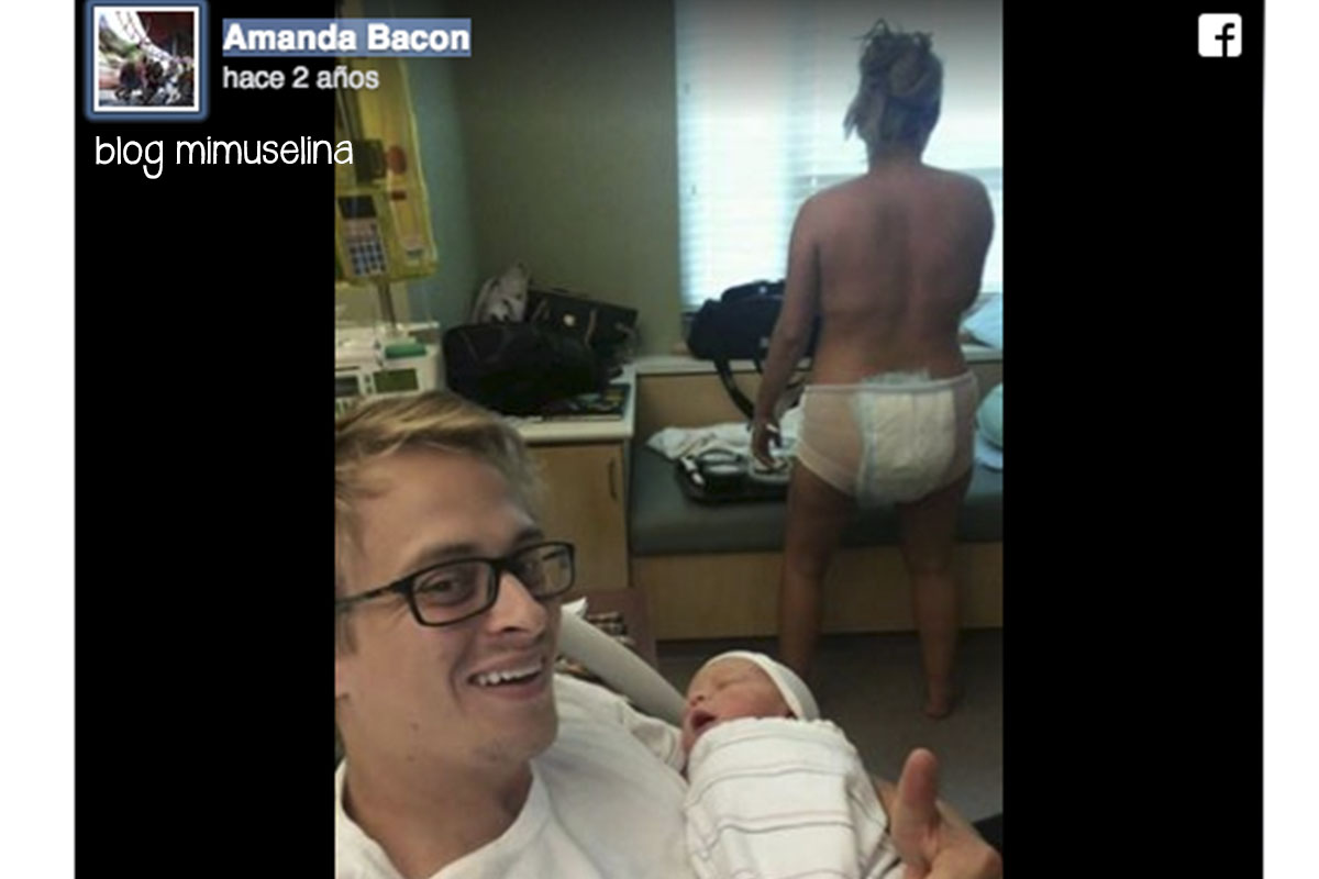 Y cuántas cosas hay que no nos cuentan de lo que de verdad es el postparto, esos primeros momentos después de haber dado a luz, cuando tu cuerpo experimenta un jaleo hormonal de cuidado y además de acostumbrarte a tu nueva vida tienes el cuerpo del revés: sangrados, dolores abdominales como de contracciones más leves... Eso no se dice... ¿O sí? Eso pensó el marido de Amanda Bacon al publicar esta foto en la que se la ve en pañales. La broma dio la vuelta al mundo, ella la compartió orgullosa porque es su verdad y la de millones de madres cada día.