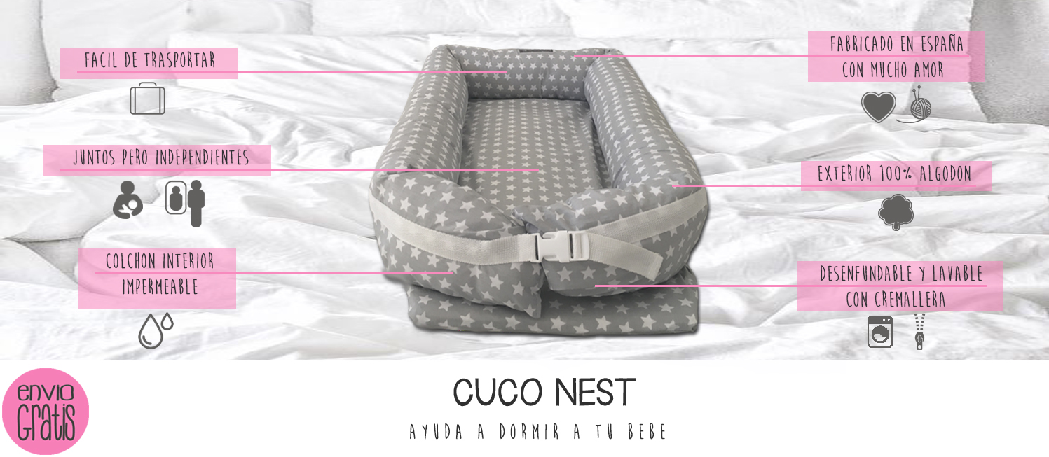 Esa barrera física que necesitan les aporta muchísimos beneficios. Es quizá por lo que, puede que sin saber esto, muchísimas de vosotras hayáis recurrido a la minicuna para los primeros meses de vida de vuestro bebé. Sabéis que si dejáis al niño en la cuna empieza a llorar, no duerme bien, se siente como perdido en tanto espacio para él, tan pequeñín. Pues en Mimuselina tenemos una solución más práctica y versátil que la minicuna y que soluciona a la perfección esta necesidad de barrera, contacto y protección que necesitan los más pequeños: el CUCONEST.