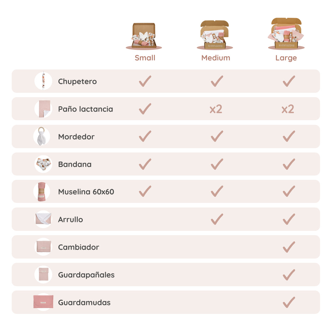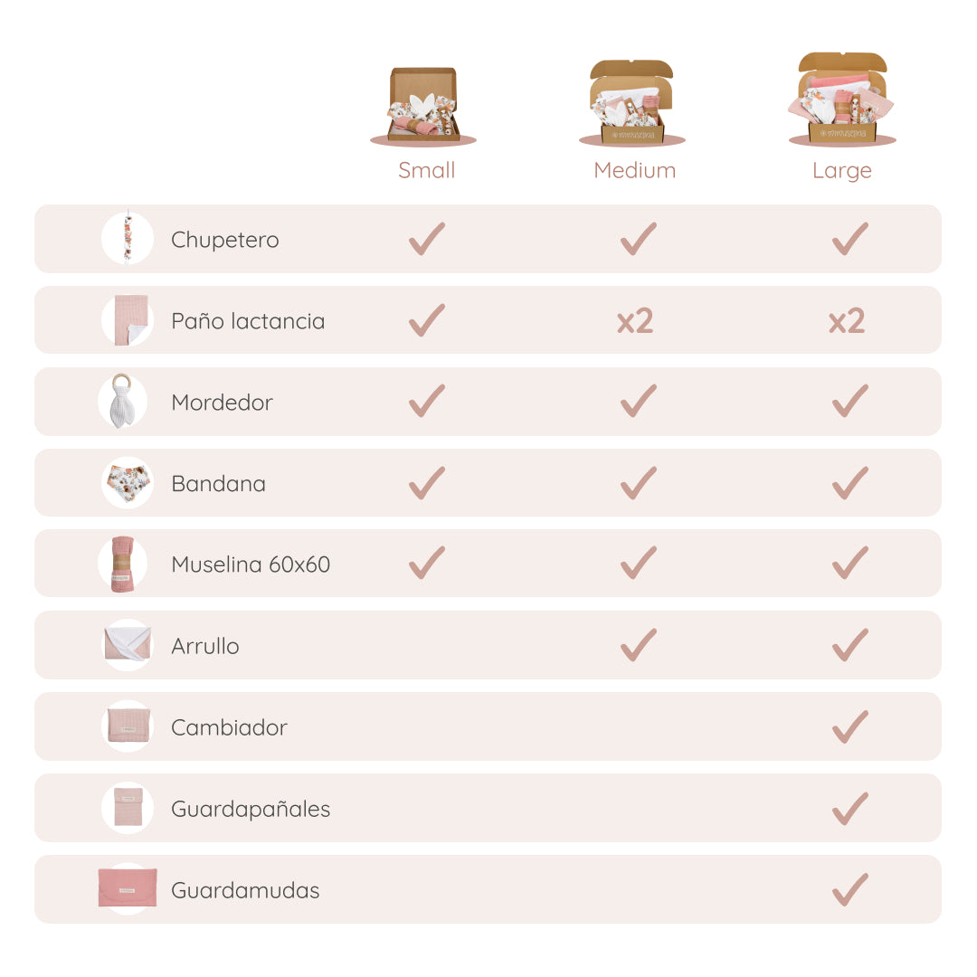 Cuanto mayor sea la talla, más productos se incluirán en la caja de regalo para bebé.