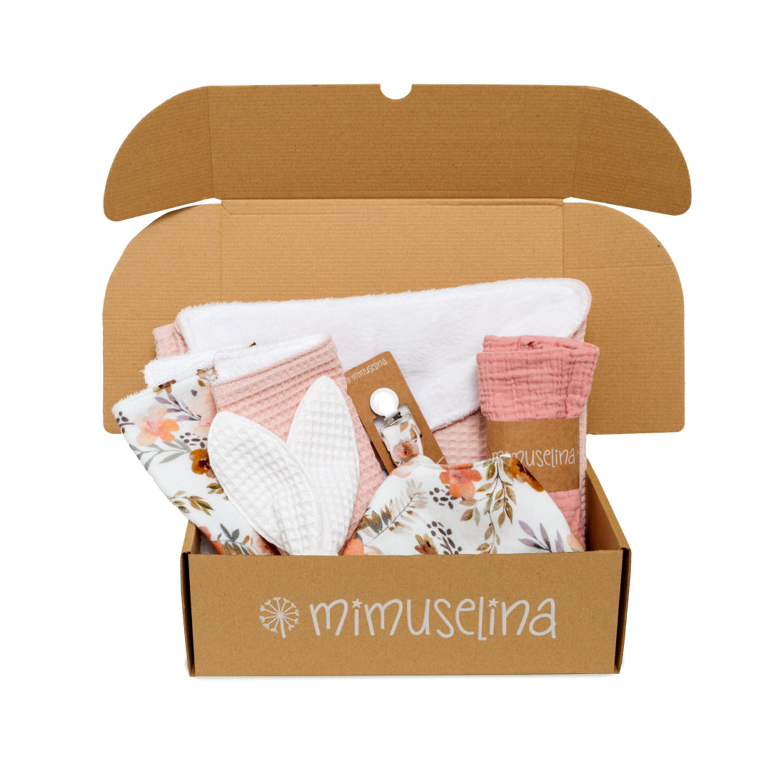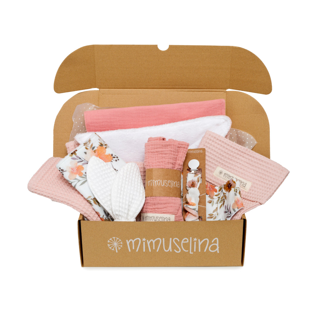 Mimuselina ha diseñado el pack regalo Provenza para proporcionar a los bebés y a los nuevos padres todo el confort que necesitan. Con esta caja de regalo, no solo regalas un conjunto de artículos útiles, sino también una caja que cuenta una historia de amor y cuidado.