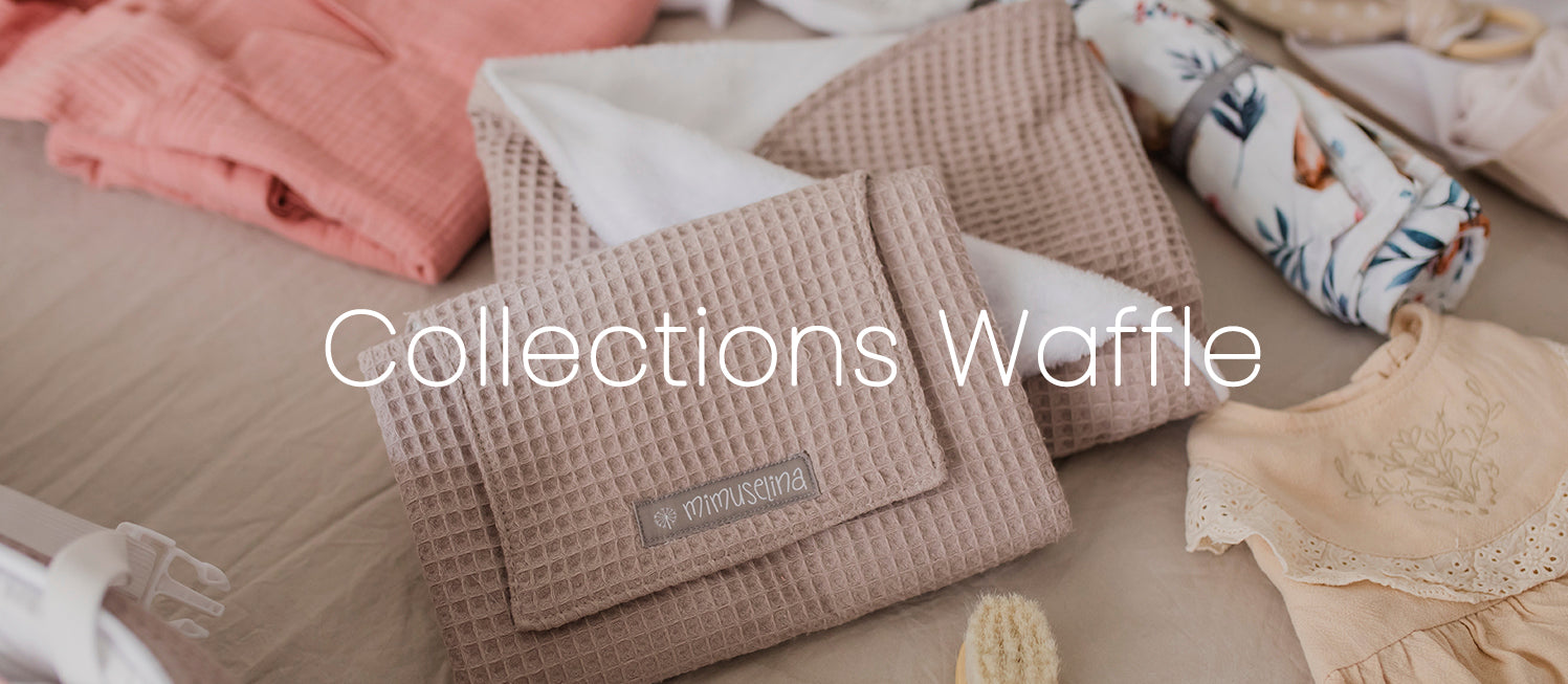 Una de nuestras colecciones estrella es la Colección Waffle, una colección sencilla y elegante con textura waffle que se caracteriza por su aspecto acolchado y le otorga cuerpo y textura. Es una colección fabricada en algodón 100%, y perfecta para aquellos que buscan calidad, suavidad y transpirabilidad para la delicada piel de su bebé. Su acolchado en tonos neutros como el menta, topo o blanco, sumado al toque de color en rosa permite que los accesorios se combinen perfectamente con cualquier estilo de decoración ya sea liso o estampado e incluso con la ropita del bebé.