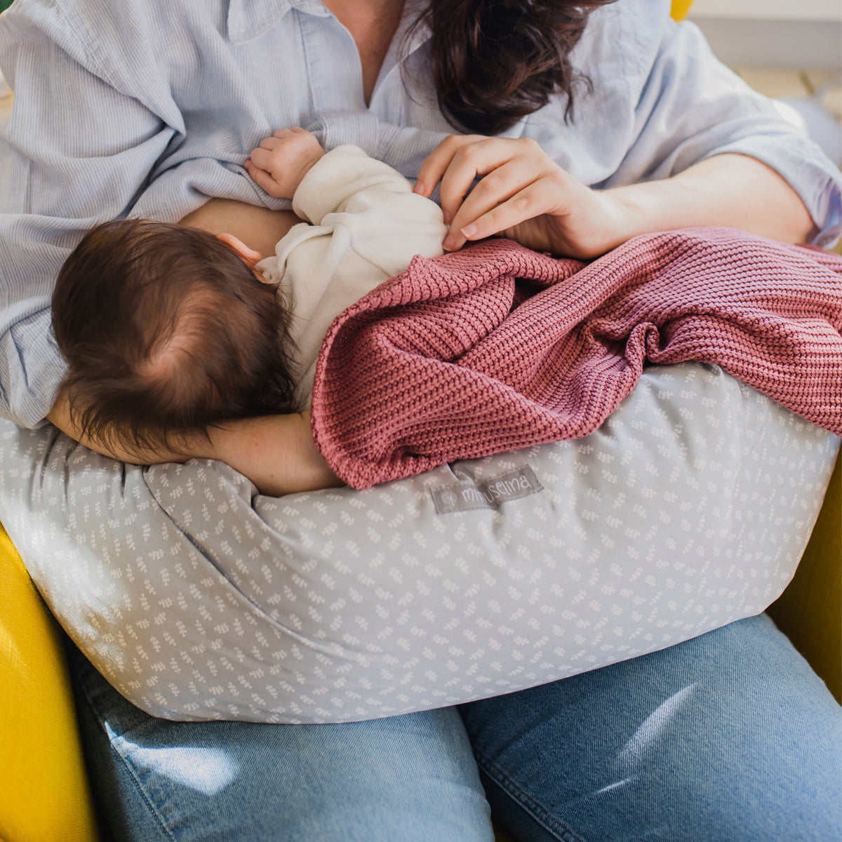 El cojín nido es desenfundable y lavable y además, cuenta con una triple cremallera para rulo y base. Al poderse quitar el rulo por completo,  se puede utilizar como chichonera o para el momento de dar el pecho al bebé.