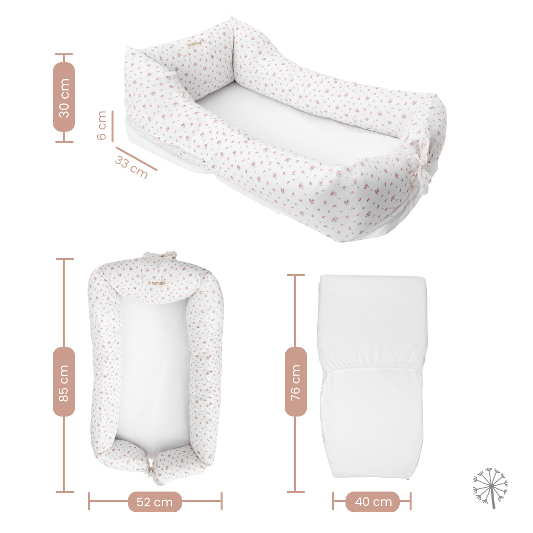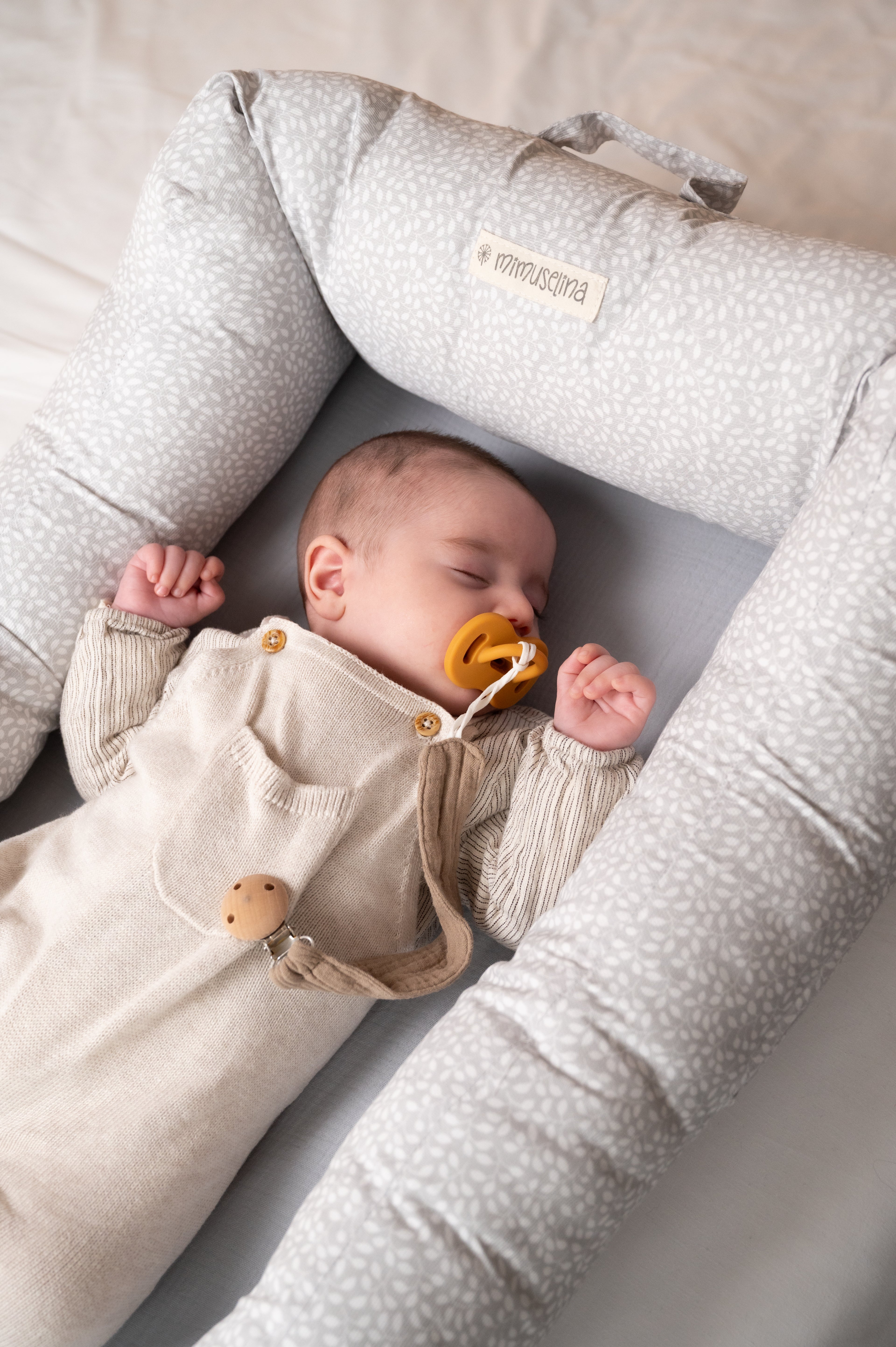 Para ese descanso del bebé, en Mimuselina hemos diseñado un nido especial, un cuco único y diferente, compuesto por tres piezas y con gran versatilidad: hasta 5 usos distintos.