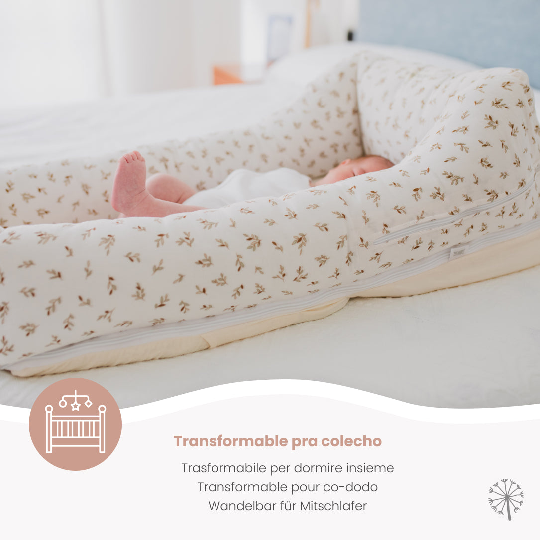 Como usos principales, el colecho seguro y el reductor de cuna. Es clave para el descanso que los peques noten una barrera física, contacto con algo, por eso el reductor les crea un espacio nada hostil como podría ser una cuna enorme.